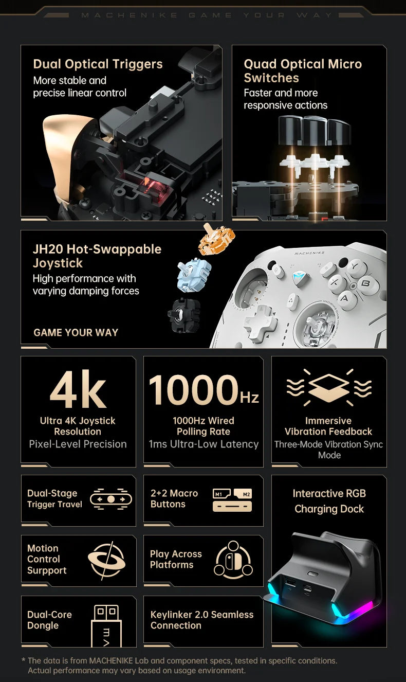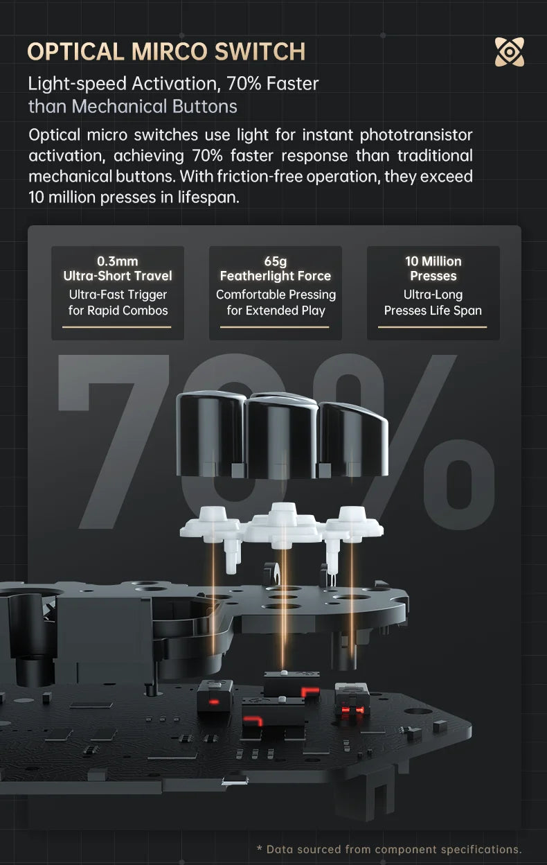 🎮 Dual Optical Triggers – twice as stable and with unmatched accuracy, without interference for smooth and responsive gameplay.