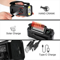 Power Modes: Solar / Hand Crank / USB / Internal Battery