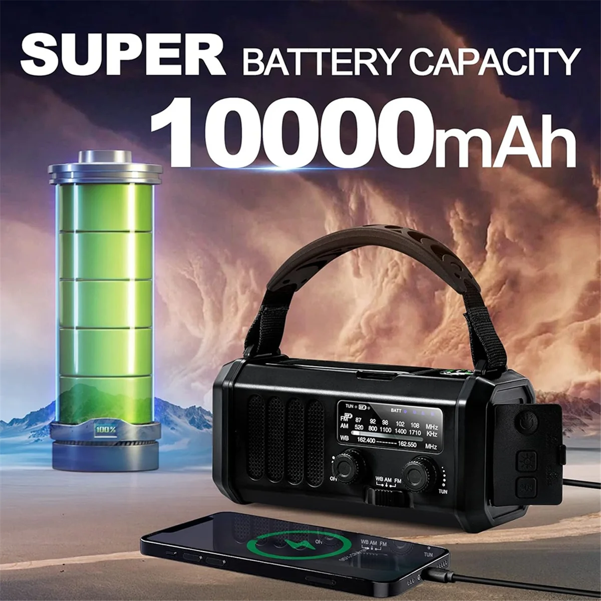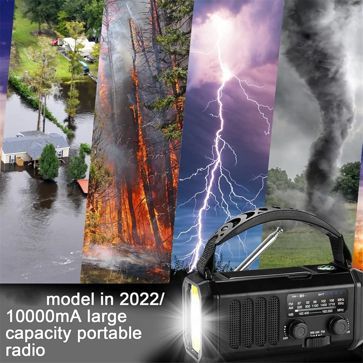 10000mAh Solar Emergency Radio โ FM/AM/WB with Flashlight, Reading and SOS ๐ฆ